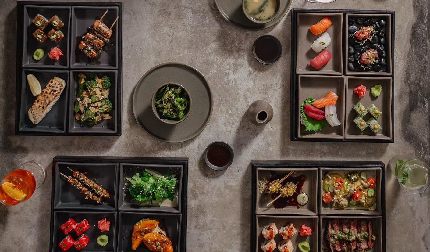 Its menu is a playful mix of creative sushi rolls, bao buns, and shared plates, making it perfect for groups and those looking to explore bold and innovative dishes.